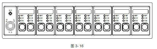 GST-LD-KZ014海灣消防直接控制盤由4路、6路燈鍵板和4路、6路輸出板組成,燈鍵板與輸出板通過16P和10P數據線連接,其面板示意圖如圖3-16所示: