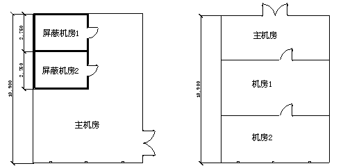 如上圖所述,兩個屏蔽機房被套裝在主機房內。滅火分區劃分出現兩種不同意見,一種意見是將三個房間劃成一個區域采用全淹沒單元獨立系統進行滅火,也就是說三個區域中任何一個發生火災時三個房間同時發出警報并同時噴放藥劑;另外一種意見是將這三個房間當成三個獨立的防火分區,采用一套組合分配全淹沒滅火系統,任何一個房間發生火災時三個房間同時報警,但系統只向發生火災的區域噴放滅火藥劑。前者意見使用藥劑量要大于后者,三個房間實際被當作一個獨立的滅火區對待,基本無太多異議,但投資相對后者要高;后者情況需要北京億杰消防工程公司模擬火災現場后再定,若機房1著火,全部房間報警,人員全部撤離,藥劑只輸送到機房1,若主機房發生火災,全部房間報警,人員全部撤離,藥劑只輸送到主機房,基本無任何危險情況發生,警報區域和范圍依照《火災自動報警系統設計規范》4.2.1.1化為一個報警區域,滅火區域劃分為三個獨立的保護區,并按照氣體保護區要求設置外開門及圍護結構。所以后者方案從使用和投資方面講更合理。