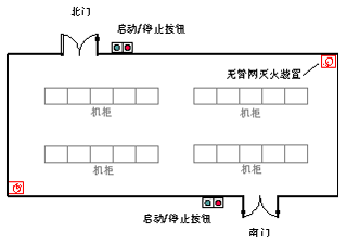 如右圖,北門出口的人認為火災已經無法控制而按下了啟動按鈕,然后匆忙離開了現場,而南門出口的人認為火勢并不大,用滅火器應該可以撲滅,南門人按下了停止按鈕,系統當然在延時噴放階段停了下來。南門人經過一番努力后發現火勢自己無法控制,然后在南門位置的按鈕上連續兩次按下啟動按鈕后,氣體滅火系統啟動并即刻滅掉了火災。從北門啟動按鈕被按下到南門二次啟動滅火系統間隔時間共2分鐘,火災狀況下每一秒鐘都很珍貴;鹗潜粶绲衾玻紵龝r間卻被延長了2分鐘。且不說設備損壞程度, 2分鐘以前的火災威脅和2分鐘之后的火災威脅出入很大,就火災危險性而言就有天壤之別。這就是嚴重的耽誤滅火事機并分化了人員力量。