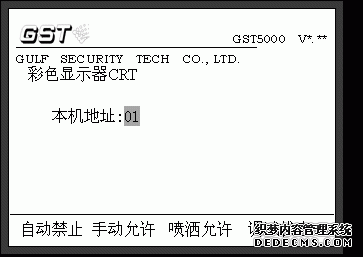 控制器接入監(jiān)控網(wǎng)卡、與控制計算機正確連接并完成設(shè)置后,便可進(jìn)行CRT顯示系統(tǒng)操作了。一臺CRT可*多和99臺火災(zāi)報警控制器相連構(gòu)成CRT系統(tǒng),每臺控制器有一個唯一的地址,要求地址設(shè)置從1開始連續(xù)設(shè)置。設(shè)置過程如下:進(jìn)入控制器“系統(tǒng)設(shè)置”菜單,選擇第四項“通訊設(shè)置”菜單(如圖8-1),選擇第5項“彩色顯示器CRT”,輸入本機地址(如圖8-9),輸入完成后,重新啟機令設(shè)置生效。